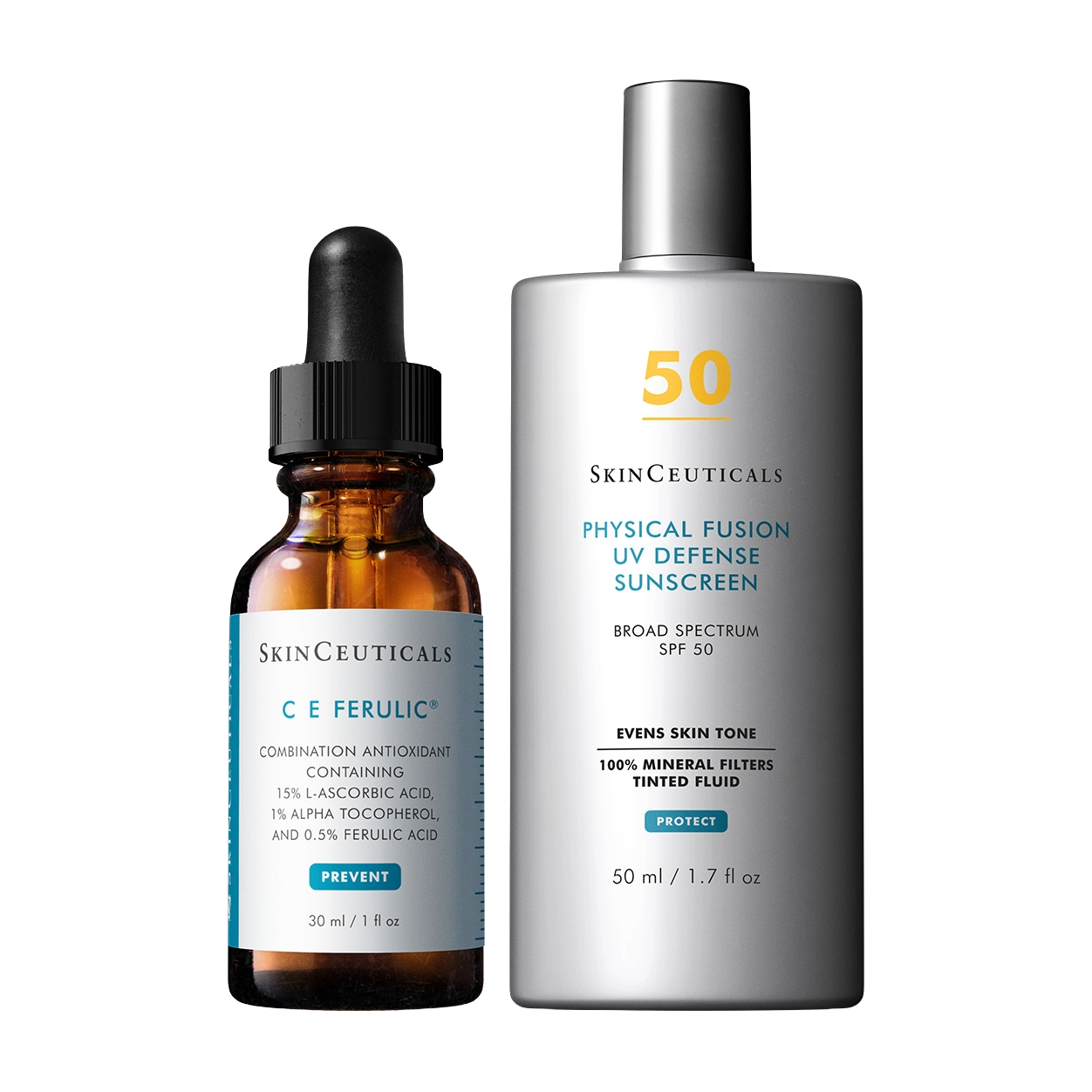 Featuring two essential SkinCeuticals heroes: our bestselling C E Ferulic and the Physical Fusion UV Defense SPF 50